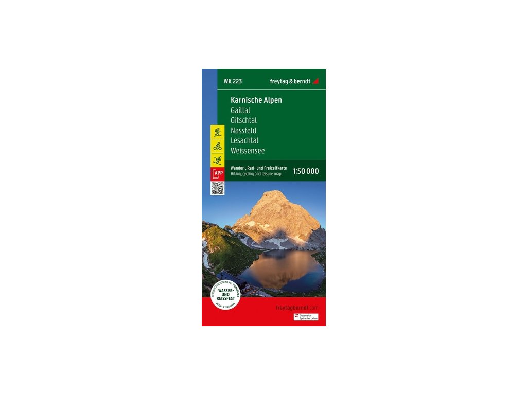 Turistická, cyklistická a rekreační mapa Karnských Alp nabízí podrobné informace o turistických a cyklistických stezkách v Karnských a Gailtalských Alpách. S Gitschtalem, Lesachtalem a Weissensee je v regionu mnoho turistických zajímavostí a Nassfeld je obzvláště oblíbený u milovníků zimních sportů. S turistickou a cyklistickou mapou si můžete ideálně naplánovat své túry a dozvědět se o památkách na trase.