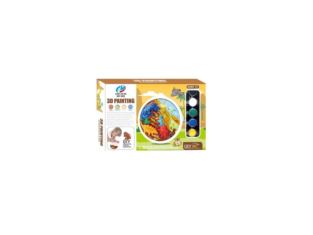 Výrobek pomáhá rozvíjet kreativitu a jemnou motoriku dítěte. Sada malování pro malé umělce v designu dinosaurů, namaluj si svůj 3D obrázek ze sádry. Smíchej barvy a tvoř další barvy.Doplňkové parametry