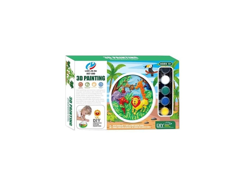 Výrobek pomáhá rozvíjet kreativitu a jemnou motoriku dítěte. Sada malování pro malé umělce v designu divokých zvířat, namaluj si svůj 3D obrázek ze sádry. Smíchej barvy a tvoř další barvy.Doplňkové parametry