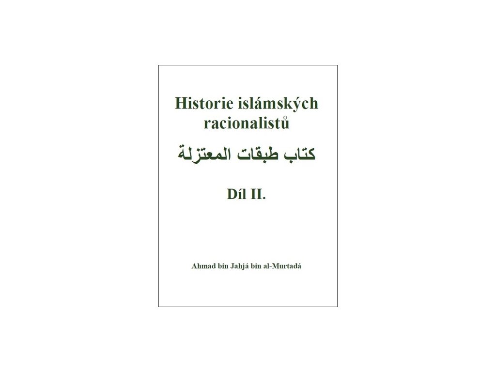 Dostává se vám do rukou závěrečná část díla muslimského teologa Ahmada bin Jahji bin al-Murtady nazvaná „Historie islámských racionalistů – díl II.“. Zatímco první díl se věnoval jednotlivým osobnostem islámského racionalismu od počátku vzniku islámu do přibližně poloviny 9. století křesťanské éry, tj. do poloviny 3. století islámské éry, tento druhý díl pokračuje popisem islámských racionalistů v dalších generacích až přibližně do přelomu 10. a 11. století křesťanské éry, tedy do přelomu 4. a 5. století islámské éry.