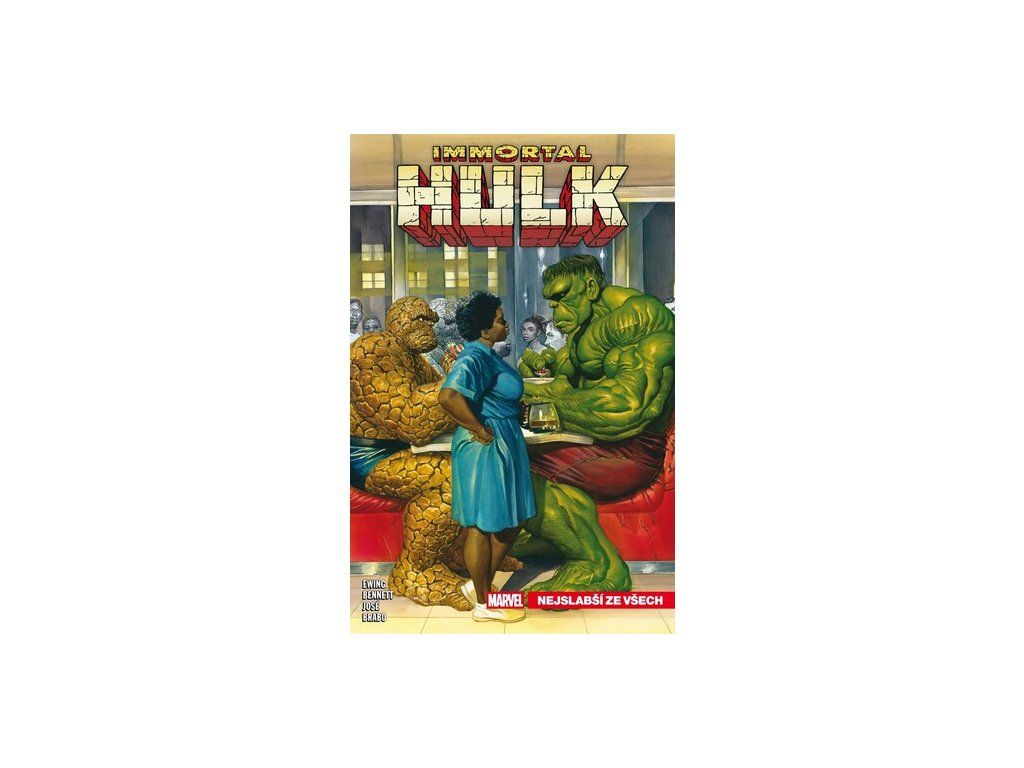Je to odveta, kterou si přáli všichni – ale ne takhle! Hulk je zlomený, bez přátel a pronásledován – stín toho, čím býval. Ale nic se nevyrovná opravdovému Thingovi! Co se stane, když Ben Grimm vstoupí do světa nesmrtelného Hulka? Jak se rok chýlí ke konci, lidé začnou bilancovat... Jackie McGeeová, Eugene Judd... a Samuel Sterns. Všechny Leaderovy plány se naplnily jako jeho možná největší triumf! Ale bude to stačit, nebo si děsivá entita Jeden pode vším přesto vybere svou daň? A navíc jsou tu U-Foes a vědí, jak konečně zabít nesmrtelného Hulka! Nový Sasquatch se střetne s něčím ještě podivnějším, než je on sám. Henry Peter Gyrich to sleduje odkudsi zdálky z oběžné dráhy. A když Hulk ztratil svou sílu, jaká naděje zůstává nejslabšímu ze všech? Obsahuje sešity IMMORTAL HULK č. 41–45, jejichž autoři jsou AL EWING, JOE BENNETT, ALEX LINS, ADAM GORHAM, RACHAEL STOTTOVÁ, RUY JOSÉ, BELARDINO BRABO, PAUL MOUNTS a CHRIS O’HALLORAN.Doplňkové parametry