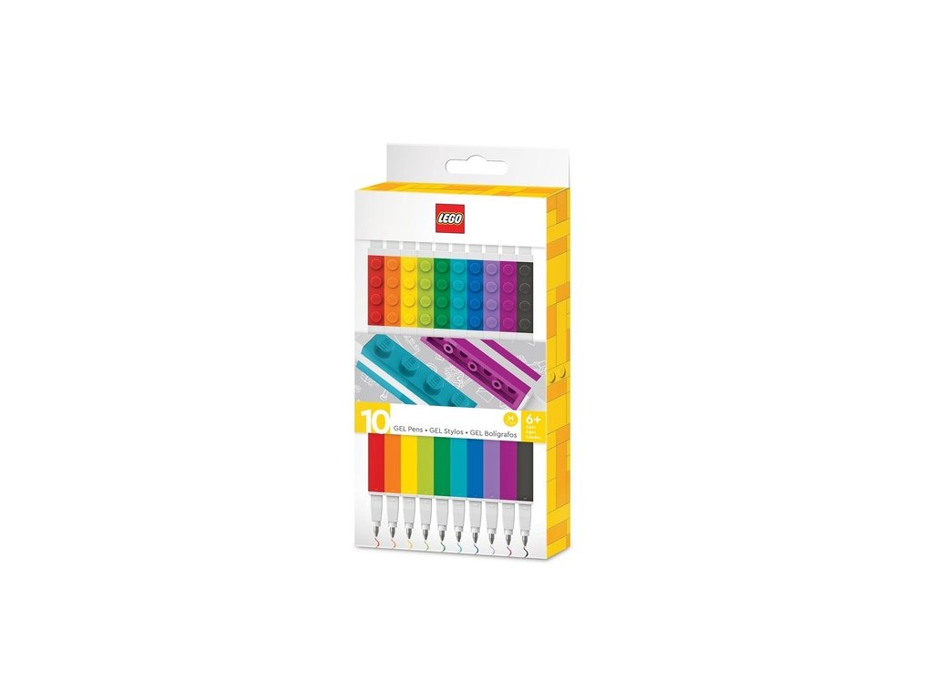 LEGO gelová pera různých barev (mix 10 barev). Součástí pera jsou 2 proužky LEGO destičky pro spojení např. s LEGO pouzdrem, LEGO zápisníkem, minifigurkou, jiným perem nebo k nacvaknutí na LEGO pravítko.Doplňkové parametry