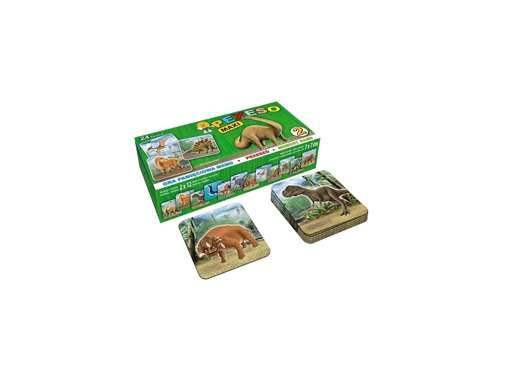 PEXESO je populární dětská stolní hra, která nikdy neomrzí a zapojit se můžou i dospělí. Pexeso - Dinosauři - je vhodné pro chlapce a milovníky pravěku. Věděli jste, že slovo PEXESO vzniklo souslovím slov PEKELNĚ SE SOUSTŘEĎ? Výborná učební pomůcka pro děti a rodiče. Naučte své děti poznávat různé druhy dinosaurů a procvičujte jejich paměť. Tato hra je zabaví na dlouhé hodiny.
