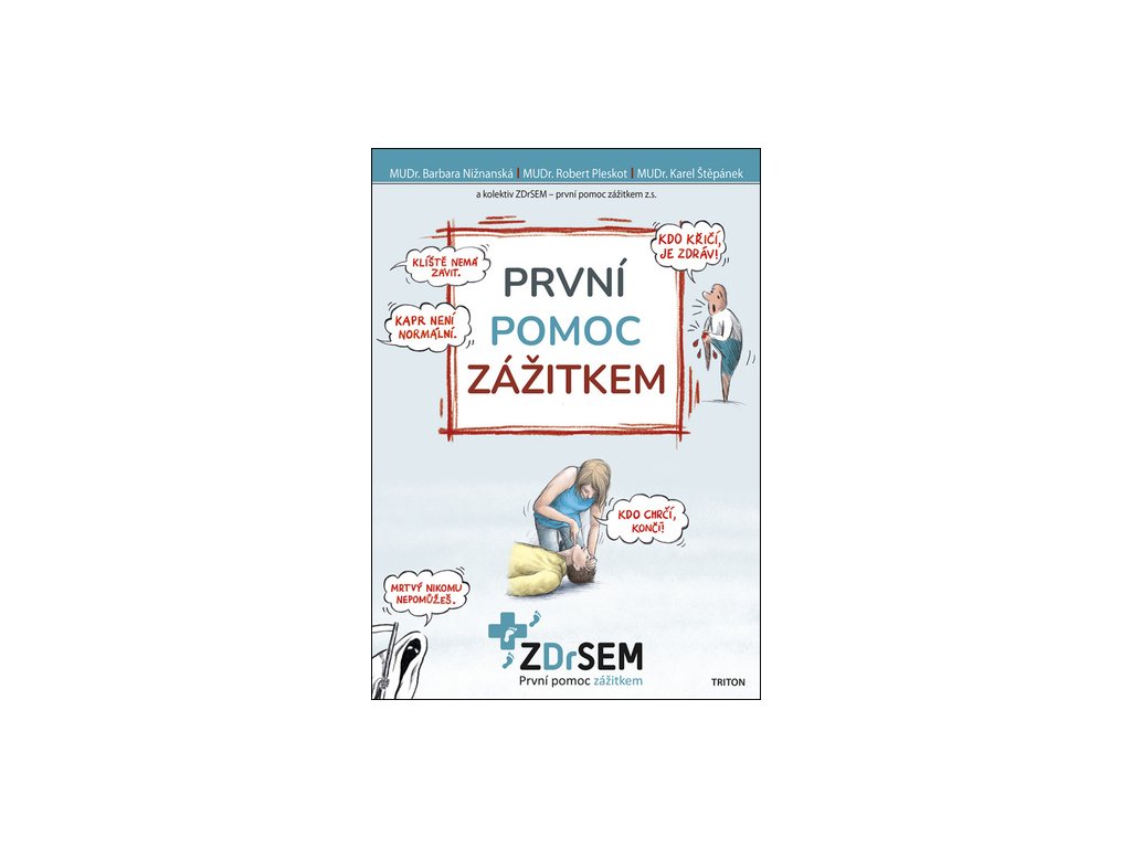 Vlastní zkušenost je nenahraditelná. Vzdělávání v oblasti první pomoci pod hlavičkou ZDrSEM je postaveno na univerzálním postupu poskytování první pomoci „Tři kroky“, na zážitko- vém přístupu k výuce pomocí simulací a praktickém nácviku dovedností. Tato kombinace dělá naše vzdělávání již léta kvalitní značkou, na kterou se můžete spolehnout. Skripta, která držíte v rukou, převádějí postup „Tři kroky“ do textové a obrázkové podoby. Naleznete zde více i méně závaž- né úrazy i stavy od resuscitace přes alergie až po vyndání klíštěte. Skripta nejlépe fungují v kombinaci se zážitkovým kurzem.