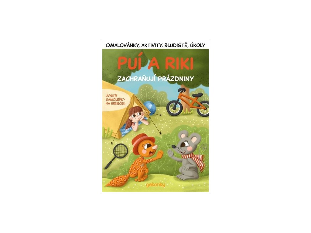 Hurá, budou prázdniny! Klárka, gekonek Puí a myšák Riki se moc těší, že pojedou stanovat. Ale nastane problém. Klárka onemocní a výlet se odkládá. Jak Puí a Riki můžou Klárce pomoct, aby se rychle uzdravila? Jakou zábavu pro ni vymyslí? Chceš všechny ty hádanky, omalovánky, bludiště a schovávačky řešit spolu s nimi? Tato kniha rozvíjí samostatné myšlení, porozumění textu a jemnou motoriku, to vše zábavnou formou. Společné čtení příběhu je příležitost příjemně a užitečně strávit čas s dětmi. V knížce navíc najdete dárek – voděoodolné samolepky na hrnečky a skleničky s postavičkami z příběhu.Doplňkové parametry