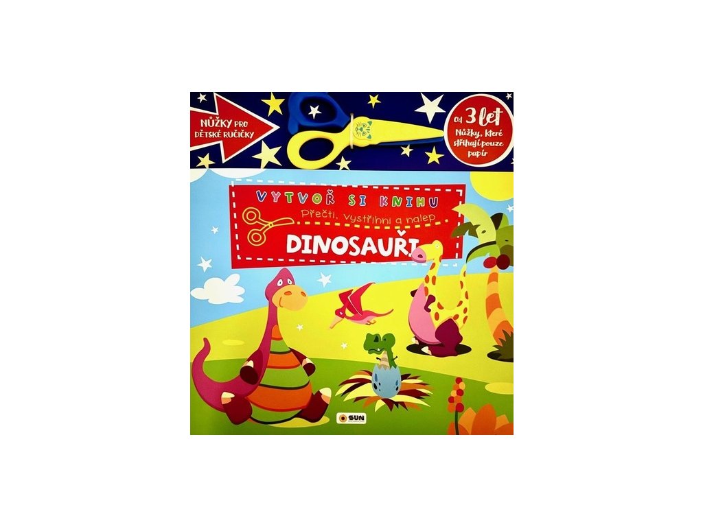 Pojďte se vytvořit vlastní knihu, bude to velká zábava. Můžete vystřihnout postavičky dinosaurů a nalepit je kam patří, nebo tam kam budete chtít. Váš příběh právě ožívá. Součástí knihy jsou i nůžky, se kterými lze stříhat pouze papír a jsou vhodné pro dětské ručičky.